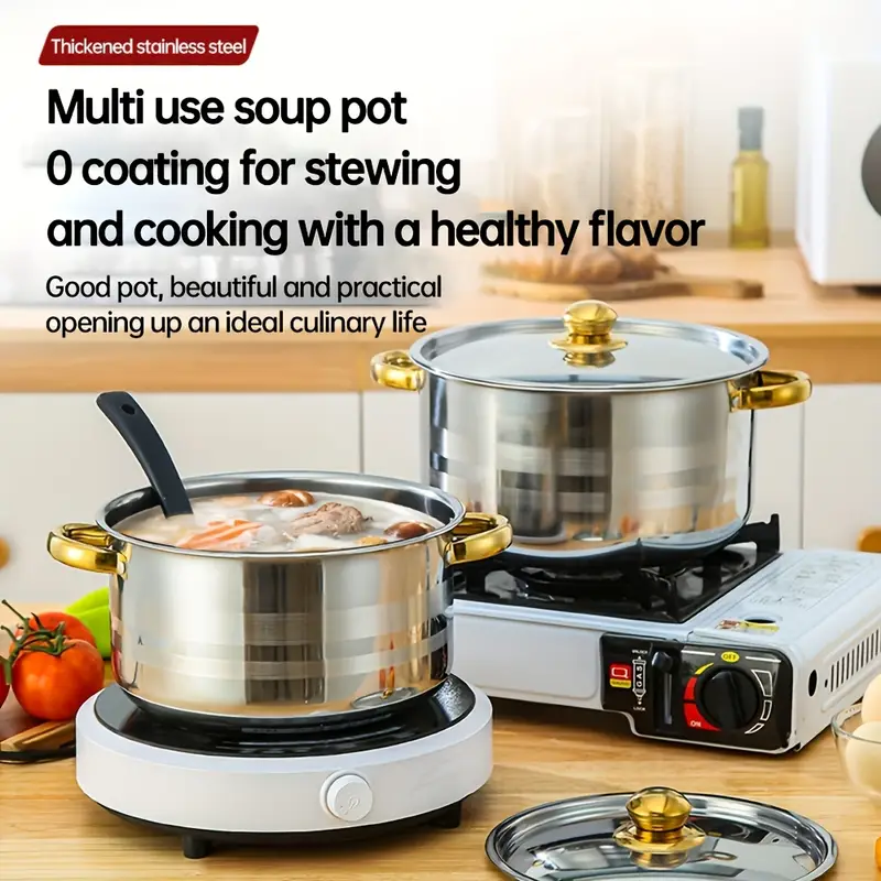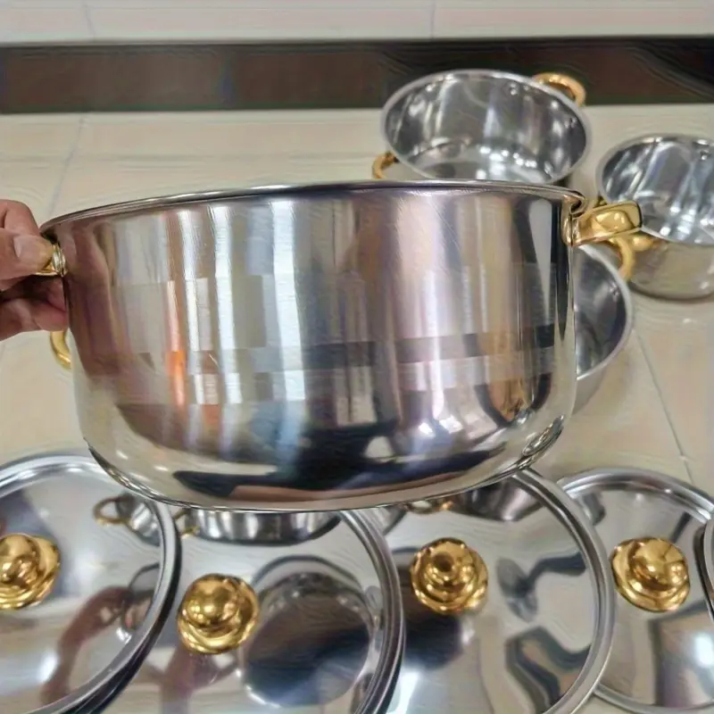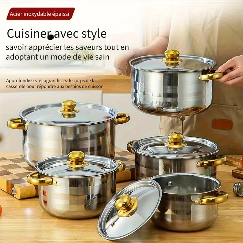 🚚 Livraison offerte dès 20€ d'achat !8pcs Set (4 Pots + 4 Couvercles) Ustensiles de Cuisine en Acier Inoxydable avec Couvercles | Adapté à une Variété de Scénarios (Maison/Restaurant/Extérieur) Adapté pour la Cuisson de Soupe, de Riz et de Pâtisserie, le Couvercle en Acier est Durable et Incassable