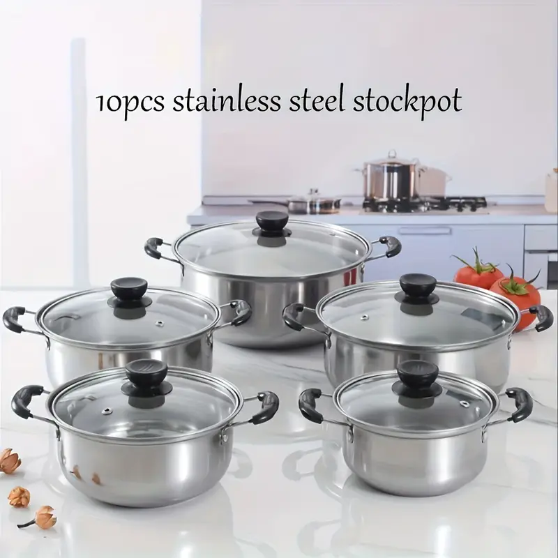 🚚 Livraison offerte dès 20€ d'achat !10 pièces Ensemble de Casseroles en Acier Inoxydable avec Couvercles, 5 Casseroles + 5 Couvercles, Multifonctionnel, Élégant et Durable, Adapté à la Plaque Induction, Idéal pour Cuisine ou Salle à Manger, Parfait comme Cadeau